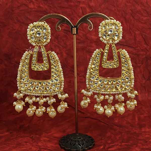 • Beautiful Pachi Kundan Chaandbali Earrings in Gold Plating & Pearl Dangling.