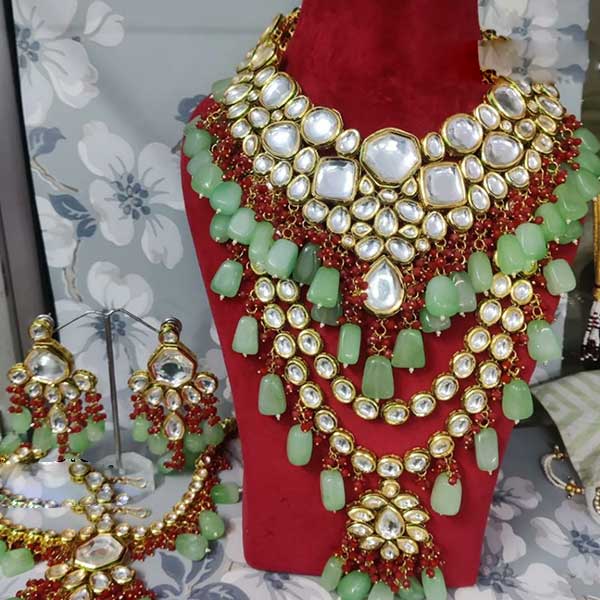 Sabyasachi designer kundan set, green kundan bridal set, kundan bridal necklace set, customizable kundan bridal sets, Royal kundan sets