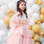 Ivory sequin dress with thick pearl satin and tulle skirt with statement satin bow in front and net sheer back.