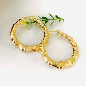 Bamboo Hoop Earrings, 18 K Gold Filled Hoops, 18 k Gold Filled Hoops with 2 ” Diameter, Medium Bamboo, Lightweight Statement Hoops, Hopps